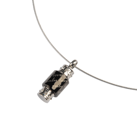 RVS As & Herdenking Koker only love ring zwart ketting hanger - klein