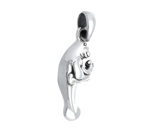 Zilveren Zeekoe lamantijn moeder en kind kettinghanger