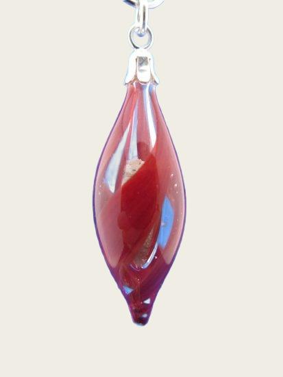 Each handmade twist in glass memorial pendant is unique. This beautiful glass pendant can be filled with ashes, hair, sand etc. after which the glass is melted shut and then provided with a silver clasp to wear on a chain. This way you can carry a memory of your loved one with you.