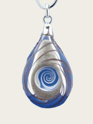 Each handmade spiral in glass memorial pendant is unique. This beautiful glass pendant can be filled with ashes, hair, sand etc. after which the glass is melted shut and then provided with a silver clasp to wear on a chain. This way you can carry a memory of your loved one with you.