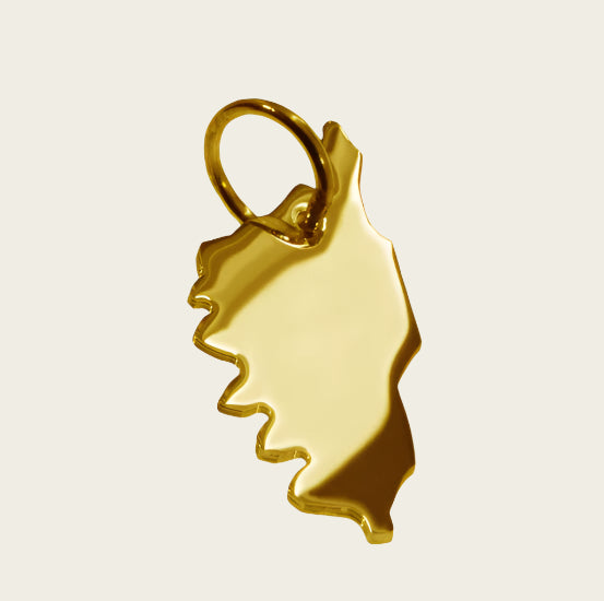 This beautifully finished Corsica Map necklace pendant in 14 carat 585 yellow gold is hand polished to a high gloss on the front and matted on the back and comes in a free gift box.