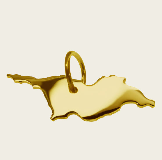 This beautifully finished Georgia Map necklace pendant made of 14 carat 585 yellow gold is hand polished to a high gloss on the front and matted on the back and comes in a free gift box.