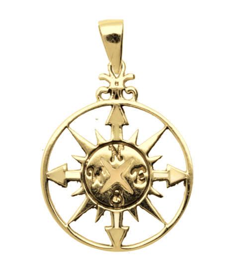 The Golden Wind Rose openwork necklace pendant is provided with the legal quality marks.