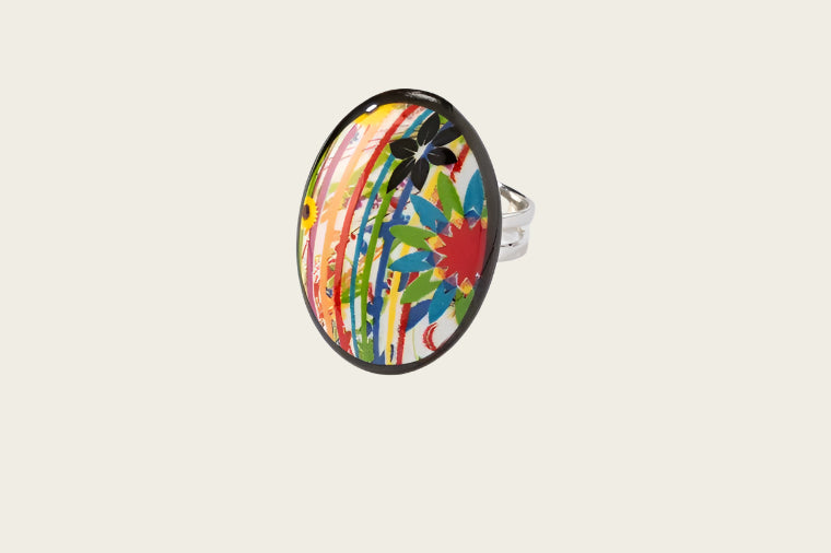 This beautiful ring is made of fine white porcelain and hand-made and painted in European studios, making each ring unique. This may cause the ring to differ slightly from the image in terms of motif.