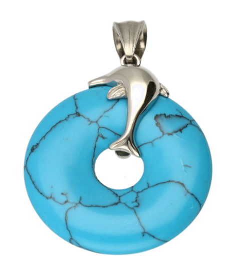 The price of this stainless steel Dolphin with turquoise ring necklace pendant is per piece and includes VAT.