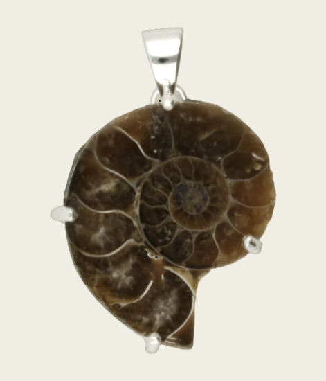 This beautifully finished Silver Ammonite fossilized shell negative necklace pendant comes in a free gift box and shipping is free.