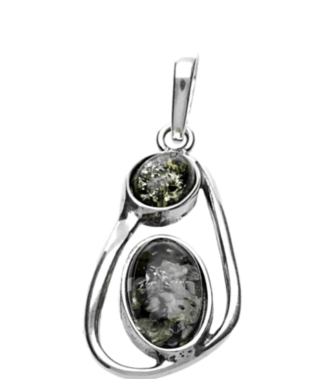 This beautifully finished Silver Amber fantasy 2 x oval necklace pendant comes in a free gift box.