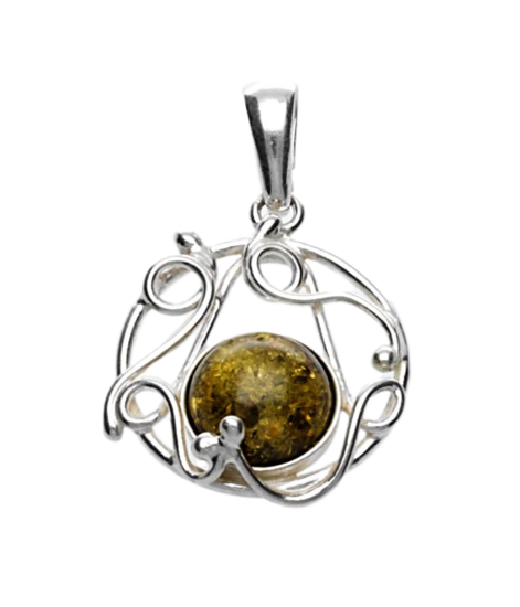 Order this beautiful Silver Amber fantasy round green necklace pendant now