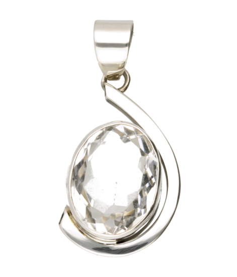 Silver Rock Crystal Gemstone Facet Oval Large Pendant