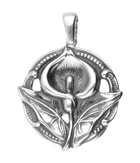 Silver Calla flower round Art Nouveau Jugendstil pendant