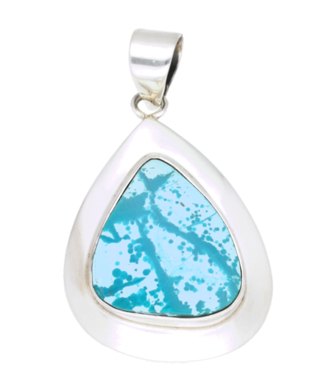 This beautifully finished Silver Chrysocolla gemstone free form large necklace pendant comes in a free gift box and shipping is free.
