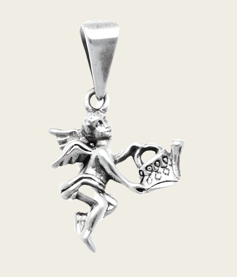 This beautifully finished Silver Angel with watering can necklace pendant comes in a free gift box.