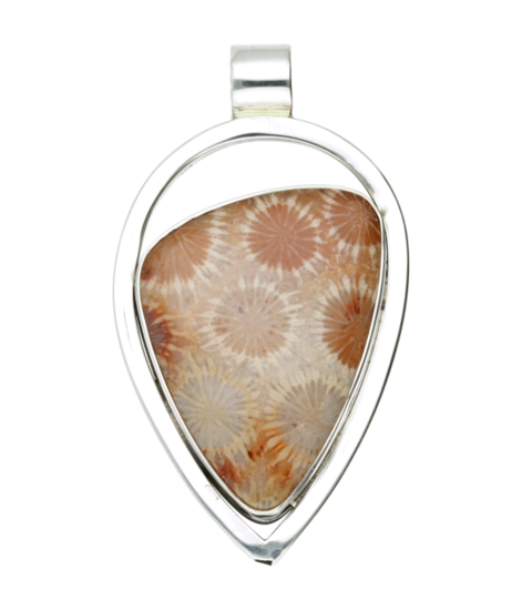 This beautifully finished Silver Fossil coral point open XL pendant comes in a free gift box and shipping is free.
