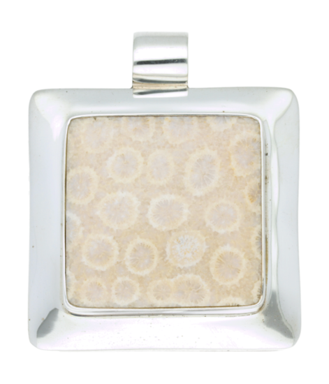Silver Fossil Coral Square XL Pendant
