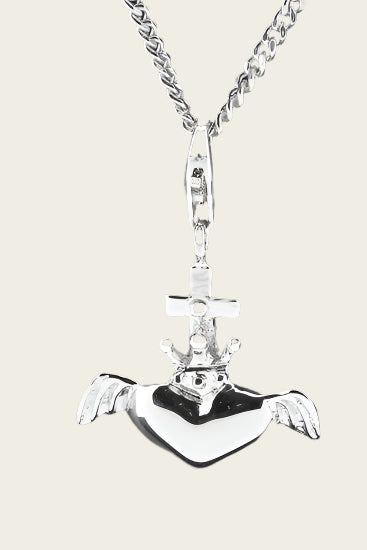 The price of the silver Heart with wings, cross and crown pendant and charm does not include the chain shown.