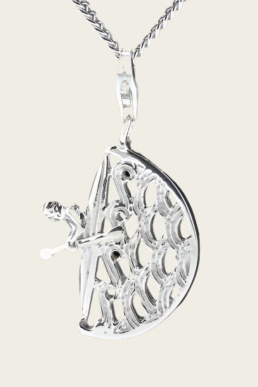 This beautifully finished silver Canoeist on the water pendant and charm comes in a free gift box.