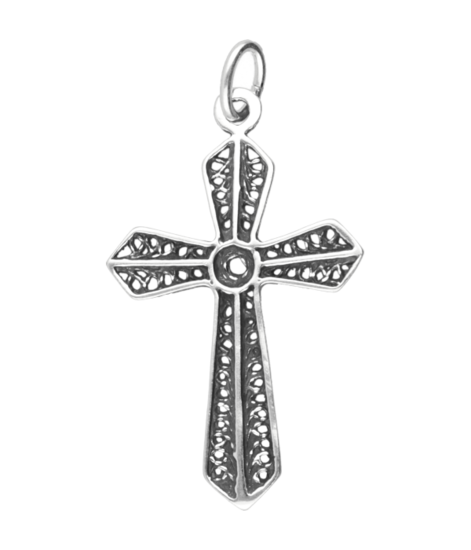 The price of the Silver Cross filigree worked pendant is without chain. Matching chains can be found under the heading: Silver chains for pendants .