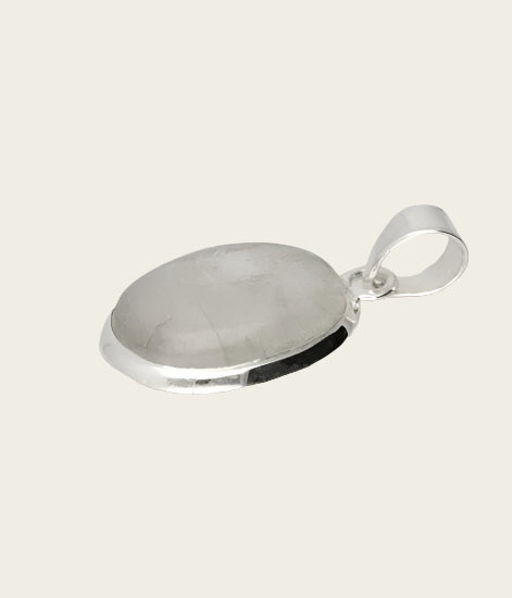 Silver Moonstone Gemstone Oval Smooth Necklace Pendant