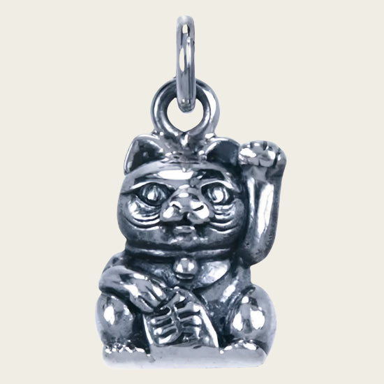 Silver Maneki Neko Lucky Cat Necklace Pendant