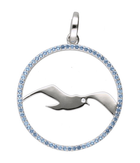 This beautifully finished Silver Seagull shine in ring with blue crystals large chain pendant comes in a free gift box, is shipped free of charge as standard and fits through the letterbox. You don't have to be home for it.Matching chains can be found under the heading: Silver chains for pendants .