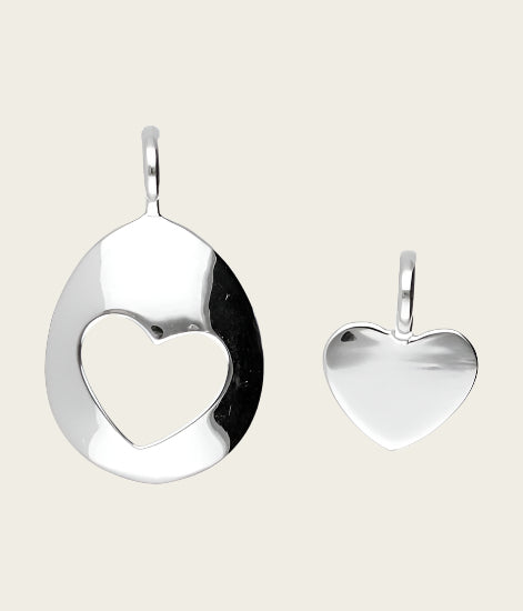 Silver Mother and Child Oval Ball - Heart Necklace Pendant