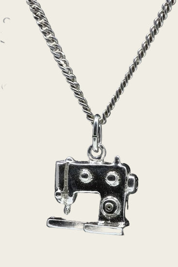 The price of the Silver Sewing Machine 2 necklace pendant is excl. the pictured necklace. Matching necklaces can be found under the heading: Silver necklaces for pendants .