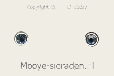 Silver Stud Earrings round with light blue cut stone