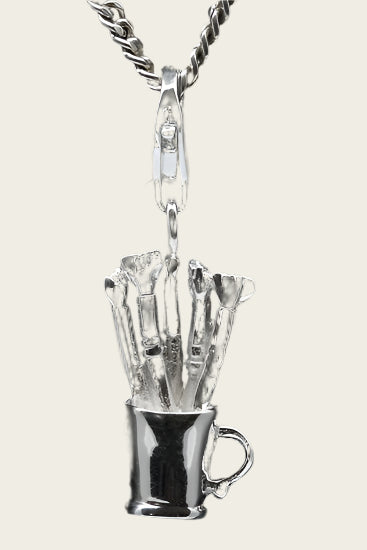 The price of the silver Brush Set in holder, pendant and charm does not include the chain shown.