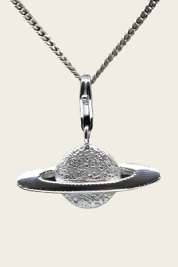 This beautifully finished silver Planet with ring pendant and charm comes in a free gift box.
