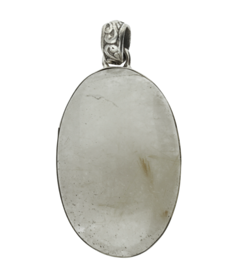 This beautifully finished Silver Rutilated Quartz gemstone oval XL pendant comes in a free gift box and shipping is free.