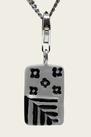 The price of the silver Sleeping Bag black/white pendant and charm does not include the chain shown.