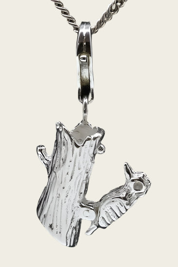 This beautifully finished silver Woodpecker on tree trunk pendant and charm comes in a free gift box.