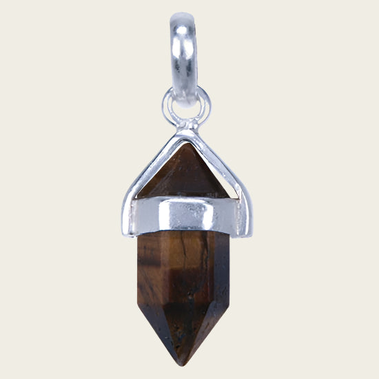 Silver Tiger Eye Gemstone with Pencil Setting Necklace Pendant