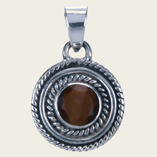 Order this beautiful Silver Tiger Eye gemstone round facet cut necklace pendant now