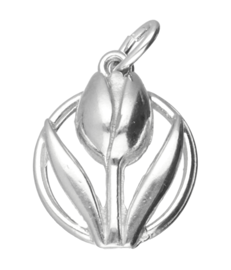 This beautifully finished Silver Tulip in circle necklace pendant comes in a free gift box.
