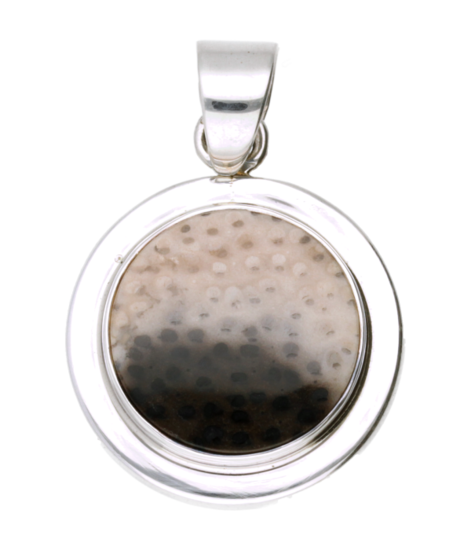 Silver Petrified Palmwood Round Large Necklace Pendant