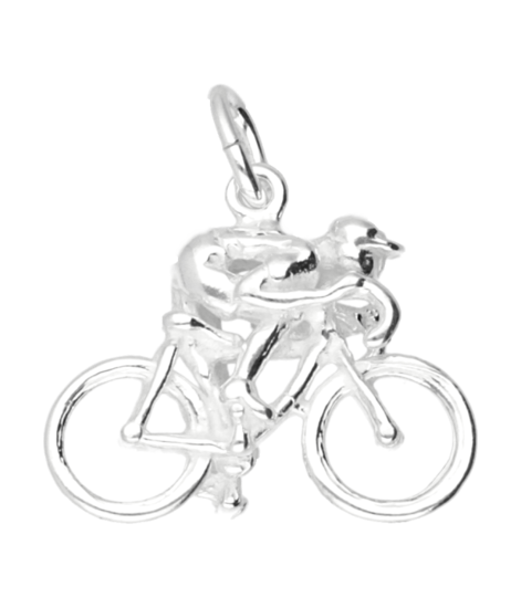 The price of the Silver Cyclist necklace pendant is excl. the pictured necklace. Matching necklaces can be found under the heading: Silver necklaces for pendants .