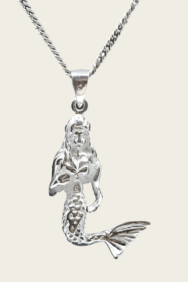 The price of the Silver Mermaid necklace pendant is excl. the pictured necklace. Matching necklaces can be found under the heading: Silver necklaces for pendants .