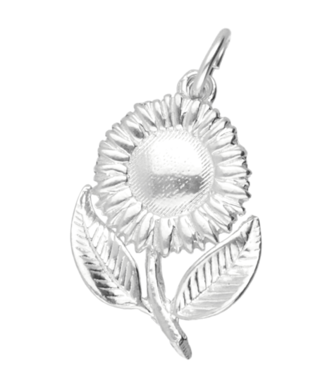 Order this beautiful Silver Sunflower with stem and leaf necklace pendant now