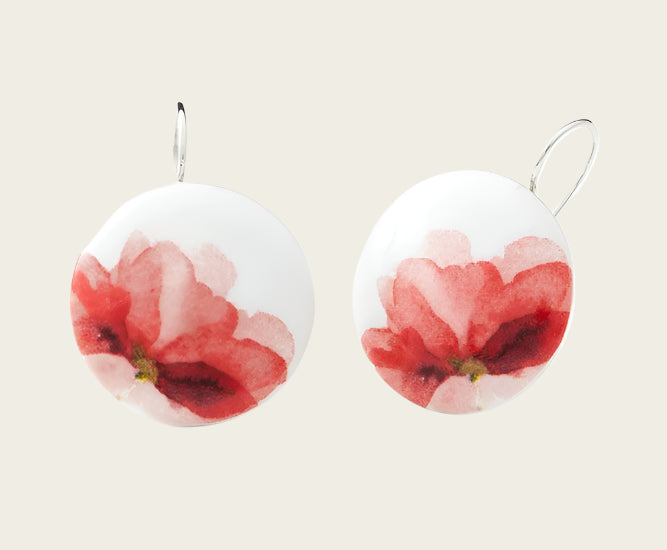 Deze prachtige oorhangers zijn gemaakt van fijn wit porselein en met de hand gemaakt en beschilderd in Europese ateliers waardoor elke oorhanger uniek is. Hierdoor kan het voorkomen dat de oorhangers, qua motief, iets kunnen afwijken van de afbeelding.