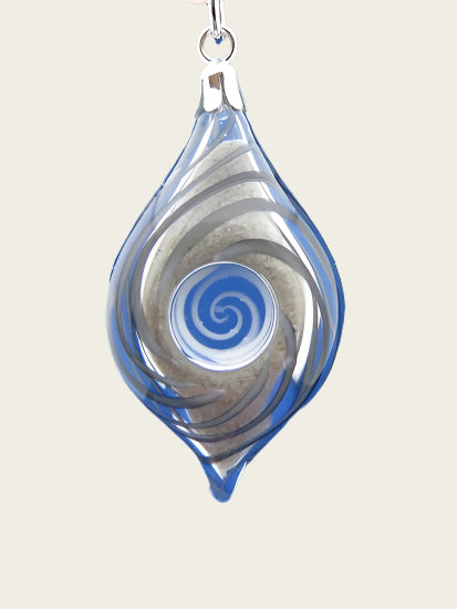 Elke handgemaakte spiraal in glas herdenkingshanger is uniek. Deze fraaie hanger van glas kan gevuld worden met as, haar, zand etc. waarna het glas dicht gesmolten wordt en daarna voorzien van een zilveren sluiting om aan een ketting te dragen. Zo kunt een herinnering van uw dierbare bij u dragen.