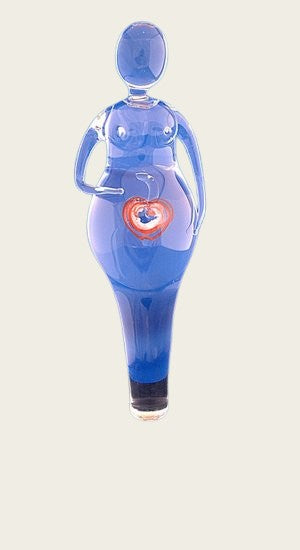 As & herdenking beeld Zwangere vrouw met hart in glas hand geblazen op sokkel