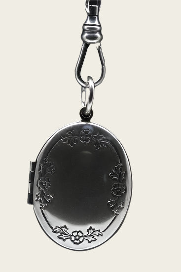 Foto medaillon Ovaal met bloemenrand 2 foto's ketting hanger zwaar verzilverd