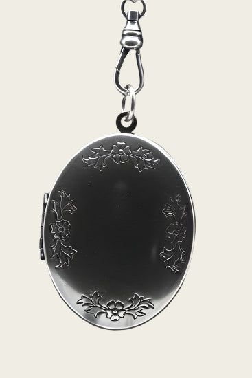 Foto medaillon Ovaal met bloemenrand 2 foto's ketting hanger zwaar verzilverd