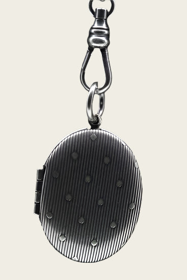 Fotomedaillon Ovaal met strepen 2 foto's ketting hanger zwaar verzilverd