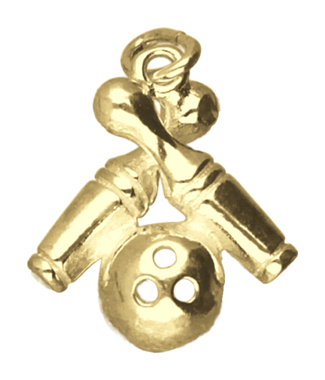 De gouden 2 Bowlingpins met bal ketting hanger is voorzien van de wettelijke keurmerken.