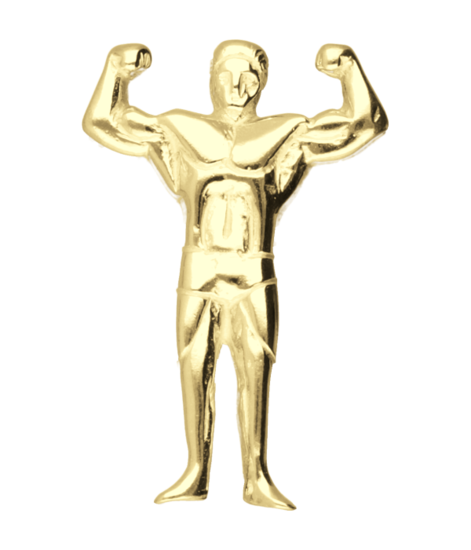 De Gouden Bodybuilder 2 armen hoog ketting hanger is voorzien van de wettelijke keurmerken.