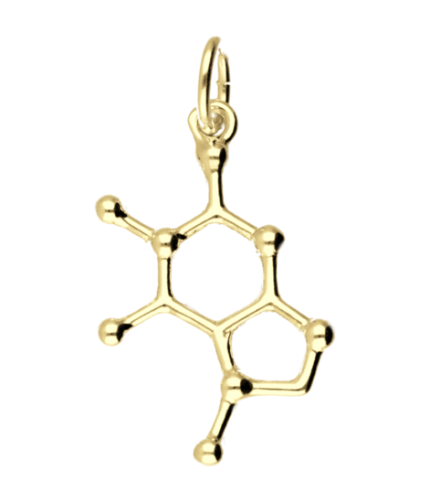Deze fraai afgewerkte Gouden Chocolade scheikundige molecuul formule kettinghanger wordt geleverd in een gratis cadeau verpakking, wordt standaard aangetekend en verzekerd verzonden en dient voorzien te worden van een handtekening bij ontvangst.Bijpassende kettingen vindt u onder de rubriek: Gouden kettingen voor hangers.
