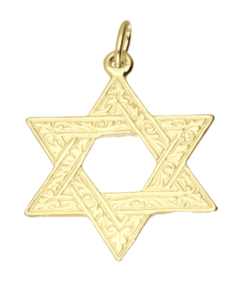 De prijs van de Gouden Davidster bewerkt ketting hanger is exclusief de afgebeelde ketting en voorzien van de wettelijke keurmerken.