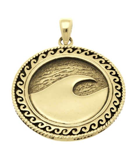 De Gouden Golf in de branding kettinghanger is voorzien van de wettelijke keurmerken.